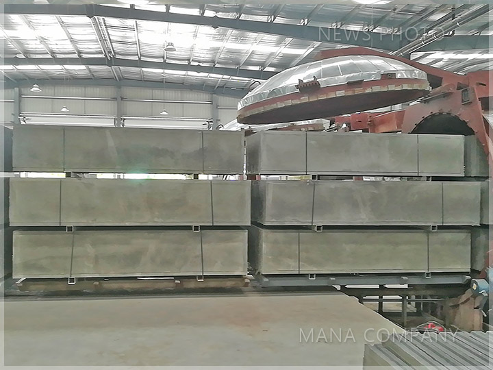 客戶現(xiàn)場-100板 24塊/模-發(fā)泡水泥墻板生產(chǎn)線-板材堆場