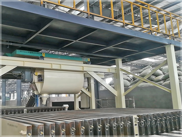客戶現(xiàn)場-100板 24塊/模-發(fā)泡水泥墻板生產(chǎn)線-自動布料機