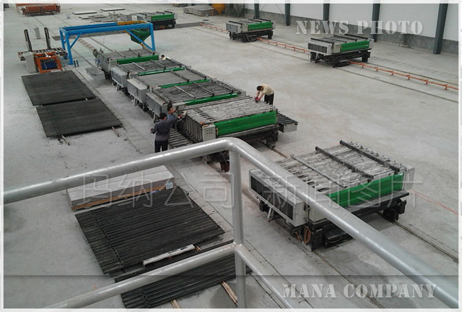5) 養(yǎng)護完成后,模具行走至出板機構工位,開模,再由出板機把墻板推出,以供打包。